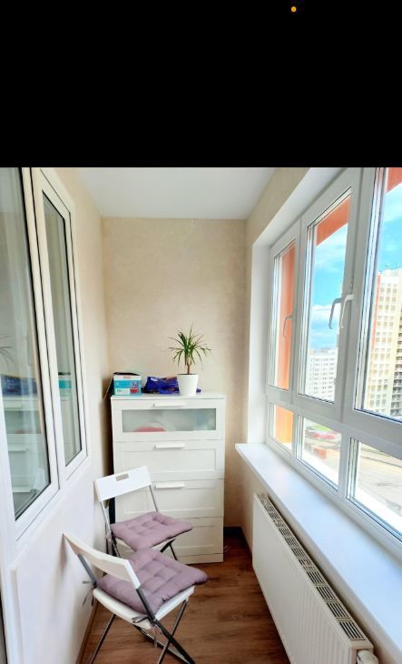 На балконе отличная зона отдыха ( кресло-кровать) ( балкон теплый, т к есть батарея) Во дворе предусмотрены открытая парковка ( бесплатная), детская и спортивная площадка.